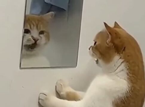 鏡の前で自分に話しかける猫の動画がSNSで話題に。可愛らしい姿に多くの人が笑顔に。