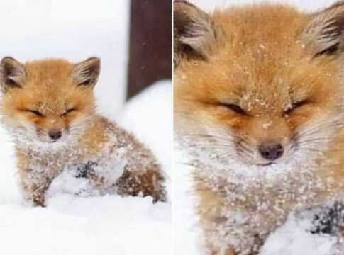 雪の中で目を閉じた子ギツネの愛らしい姿が話題に。雪の音を楽しむ様子が印象的。
