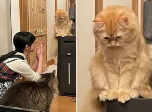 話しかけても返事がない….鏡の中の「もう一匹の猫」と交流を試みる猫の健気な姿にSNSが爆笑