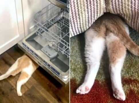 完璧に隠れているつもり?お尻丸見えの天然猫に飼い主困惑…「隠れんぼの天才」を自負する姿が可愛すぎる