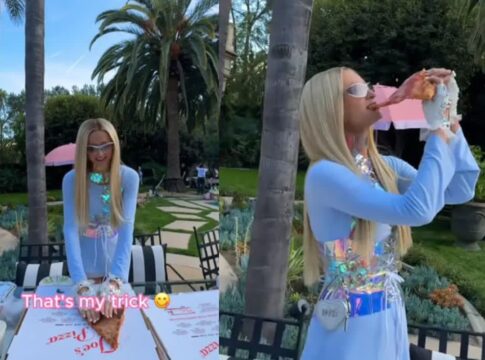 パリス・ヒルトンがピザの箱を押し付ける独自の食べ方を紹介し、話題に。動画は140万回再生を突破。