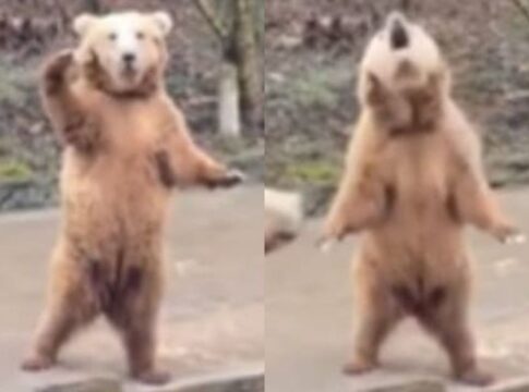 クマが観覧客のおやつを見て前足でジェスチャーし、見事にキャッチする様子が話題に。