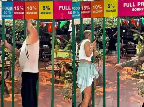 タイの料理店が狭い隙間を通過した客に割引を提供するイベントを実施し、賛否が分かれている。