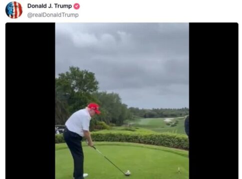 トランプ大統領が関税発表後にゴルフを楽しむ動画を投稿し、批判が高まる中、株価も暴落。