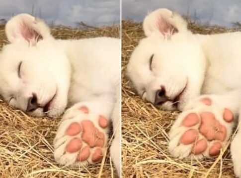 子ライオンが眠る姿が可愛すぎて心を奪う。動画での愛らしい肉球も話題に。