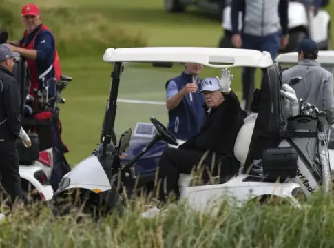 トランプ前大統領がスコットランドでゴルフを楽しむ中、EUとの関税交渉が進行中で緊迫感がない様子。