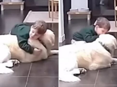 少年がゴールデンレトリバーを踏んで謝り、優しく抱きしめる姿が感動を呼んでいる動画が話題に。