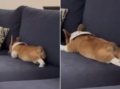 飼い主に注意されたコーギーが拗ねる姿が可愛いと話題に。SNSでの動画が多くの人を癒している。