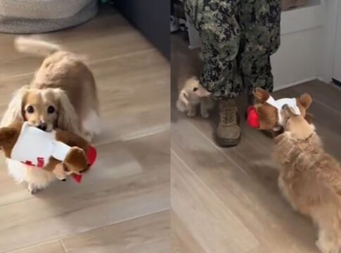 「これパパにあげるの!」毎日パパの帰りを待つダックスフンドの健気な姿に胸キュンが止まらない