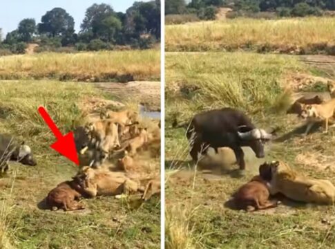 「命をかけた母の勇気」...ライオンに捕らわれ泣き叫ぶ子を救うため、ライオン群れに猛突進する母バッファローの姿に全世界が涙