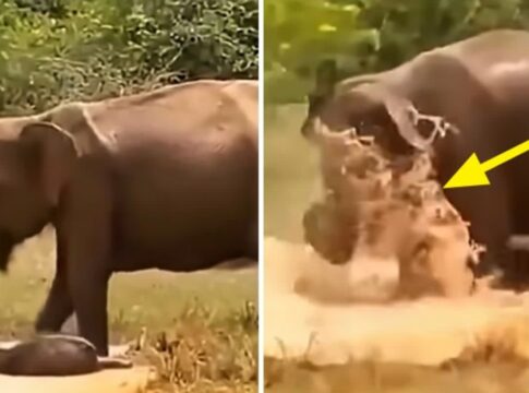 「お手上げだからやめて…」母ゾウの怒りの踏みつけに遭った休憩中のワニ、予期せぬ攻撃から脚の間をすり抜け脱出