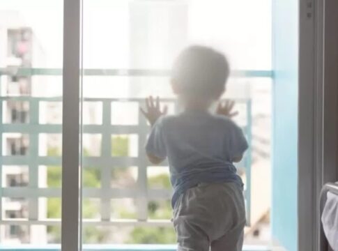 中国の高層マンションで子供2人が手すりにぶら下がる危険な状況が発生。迅速な対応で危機を回避。