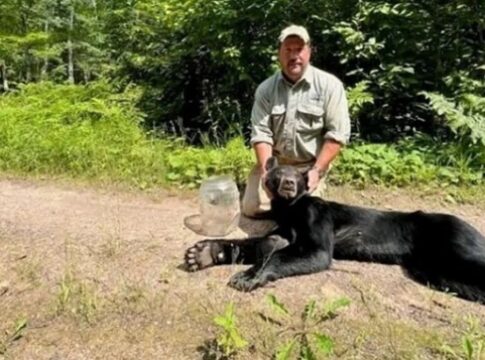 “プラスチック容器に頭がはまったまま”数日間、空腹で80kmをさまよった雌グマ、無事救出される!