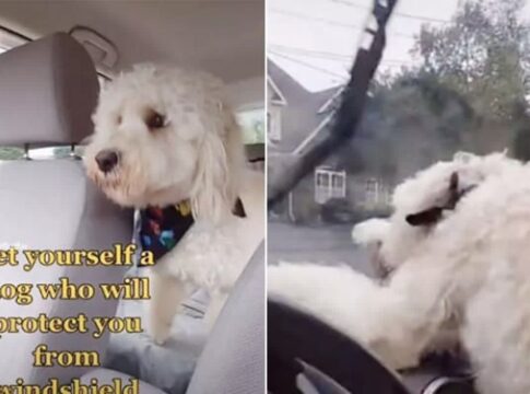 子犬がワイパーを「怪物」と誤解し、飼い主を守るために奮闘する姿が話題に。