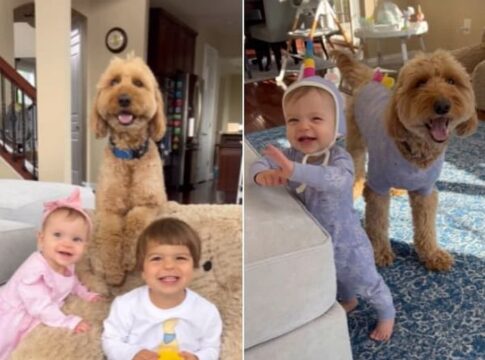 【笑顔の魔法】赤ちゃんと犬のツーショット、疲れた心が癒される奇跡の育児風景
