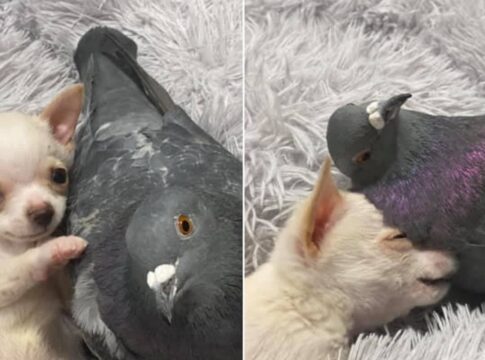 空を飛べない鳩と後ろ足が不自由なチワワが絆を結び、互いに支え合う姿が感動を呼んでいる。