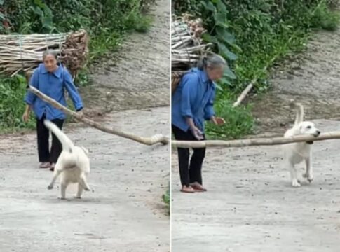「おばあちゃん、これ僕が持つよ!」重い木材をくわえて運ぶ“天使の犬”に、世界が優しくなった