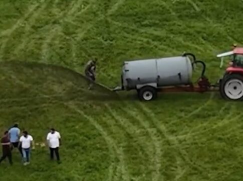 フランスの農民が不法占拠者を追い出すため、液体肥料を撒く様子が話題に。警察の協力が得られず自力で対応。