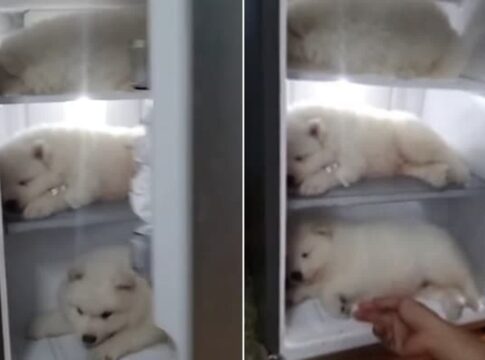 「あ〜暑い!…ん?ここ、涼しいかも」冷蔵庫で涼を取る子犬たちがSNSで大反響 見ているだけで癒やされる夏の日常