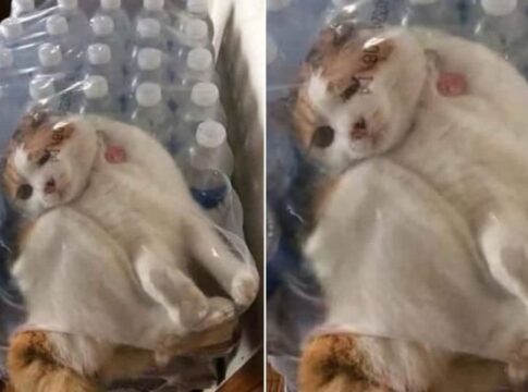 猫がビニールパックに入り込み、抜け出せずに困った表情で飼い主を見つめる姿が話題に。