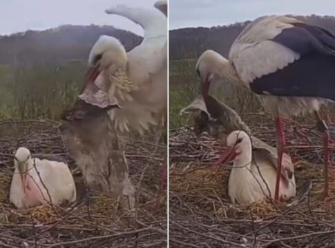 「卵を温める妻のために...」夫コウノトリが見せた「人間顔負けの深い愛情表現」に世界が感動!