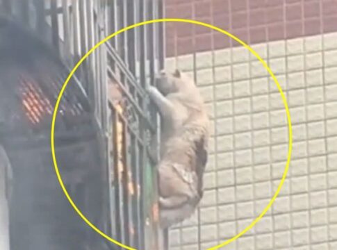 中国の火災で、ベランダの面格子にしがみついた猫が消防士に救助され、話題になっています。