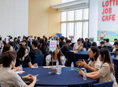 ロッテグループの「ジョブカフェ」が盛況で、求職者に直接相談や情報提供を行った。