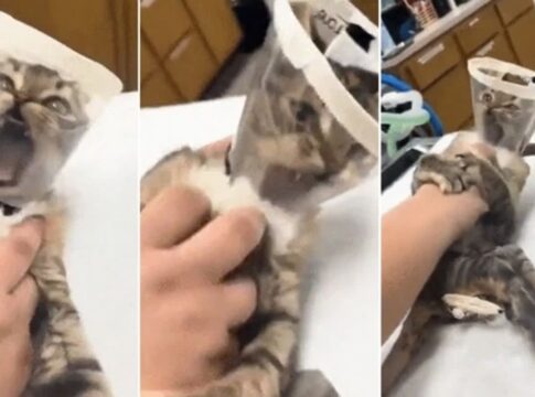 猫のお腹を触りたい飼い主が透明なエリザベスカラーを発明し、ネットで話題に!