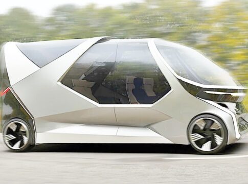 水素燃料駆動の未来型キャンピングカー「ルーム」は、ラグジュアリーな移動空間を提供する革新的なデザイン。
