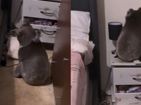 「え?」帰宅したら寝室にコアラ、まさかの侵入者に固まる住人…どういうこと?