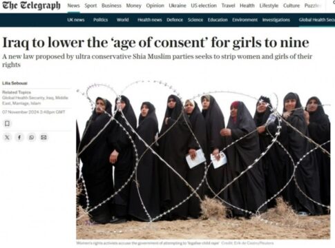 イラク議会が女性の法定結婚年齢を9歳に引き下げる家族法改正案を推進し、国際的な論争を引き起こしている。