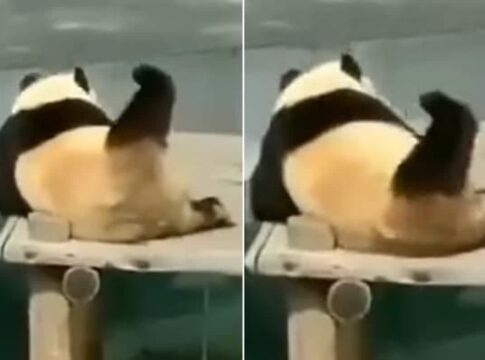背中がかゆいパンダが木に体をこすりつけて掻く姿が微笑ましく、SNSで話題になっている。