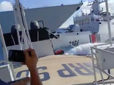 フィリピン政府は南シナ海で中国海警局の船と中国海軍艦艇の衝突を報告し、緊張が高まっていると指摘。
