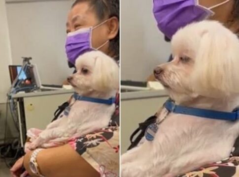 「何コレ眠すぎ…」大好きなおばあちゃんと早朝礼拝に参加したマルチーズ…信者たちも思わずニッコリ