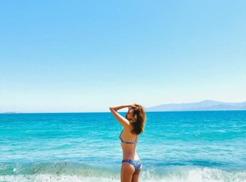 ファッションモデル矢野志保がギリシャでの夏を満喫するリゾートルックを披露し、好評を博している。