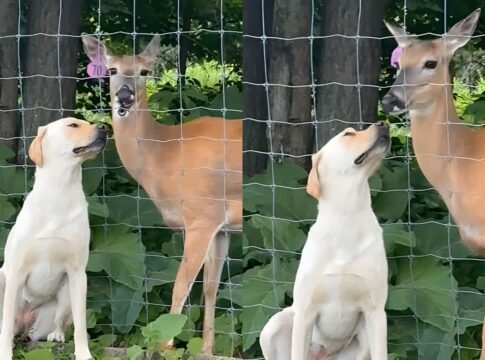 【癒しの友情】種族の壁を超え、犬と鹿が見せたフェンス越しの深い愛情に世界が涙