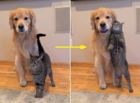 猫がゴールデン・レトリーバーを愛し、いつも後をついて回る姿が微笑ましいと話題に。