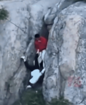 泰山で観光客が手すりを越え転落の危険、男性が女性を助ける映像がSNSで拡散。安全意識の欠如が批判。