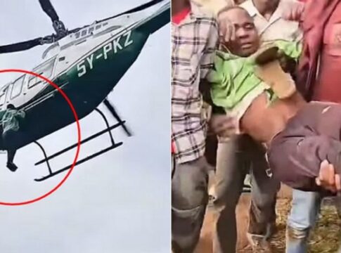 結婚式でヘリにぶら下がった男性が疲労で倒れ、命がけの行動の結果逮捕された。