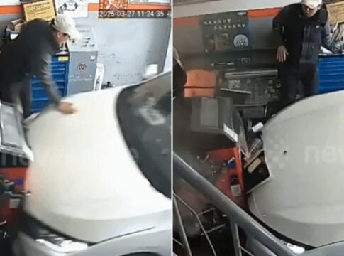 中国整備工場での衝撃映像!「アクセル踏み間違え」暴走した車両が整備士に突撃
