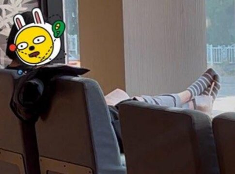 「湿った足裏」スターバックスでテーブルに両足を乗せてくつろぐ中年韓国人