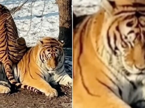中国の動物園で、トラ夫婦の微笑ましい映像が話題に。メスがオスの背中に座り、観客を笑わせた。