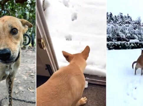 タイで保護された捨て犬ラスティが英国で初めて雪を体験し、幸せに駆け回る姿が話題に。