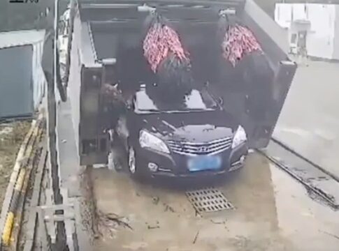初心者ドライバーがセルフ洗車機で車を動かし、機械を破壊。運転者は怪我はなかったが、賠償が必要に。