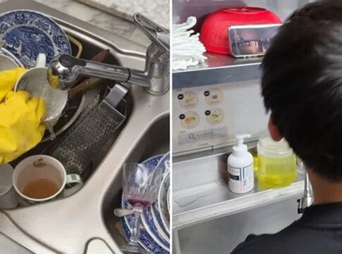 外国人従業員が皿洗い中に携帯電話を見ていたことから社長が叱責、後に家族の映像を見ていたと判明。