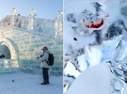 中国ハルビンの氷祭りで、氷の彫刻に血痕や髪の毛が発見され、来場者の舌がくっつく事故が原因。