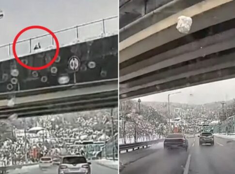 高速道路を走行中に突然割れたフロントガラス高架道路から雪玉を投げる人影が…「殺人未遂」と非難の声殺到