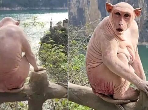 毛がない猿が中国で話題に。皮膚病が原因で毛が抜けたが、元気に暮らしている様子が注目されている。