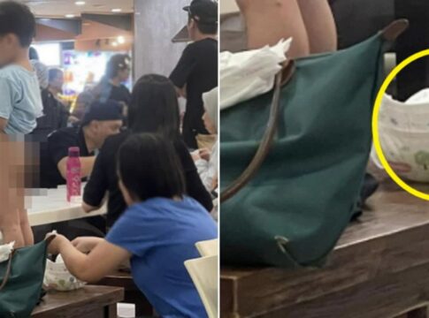 ショッピングモールのフードコートで母親が息子のおむつを椅子で交換し、物議を醸している。