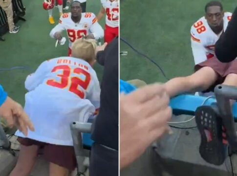 アメリカンフットボールの試合中、少年が3m下に転落。選手が機転を利かせて事故を未然に防いだ。